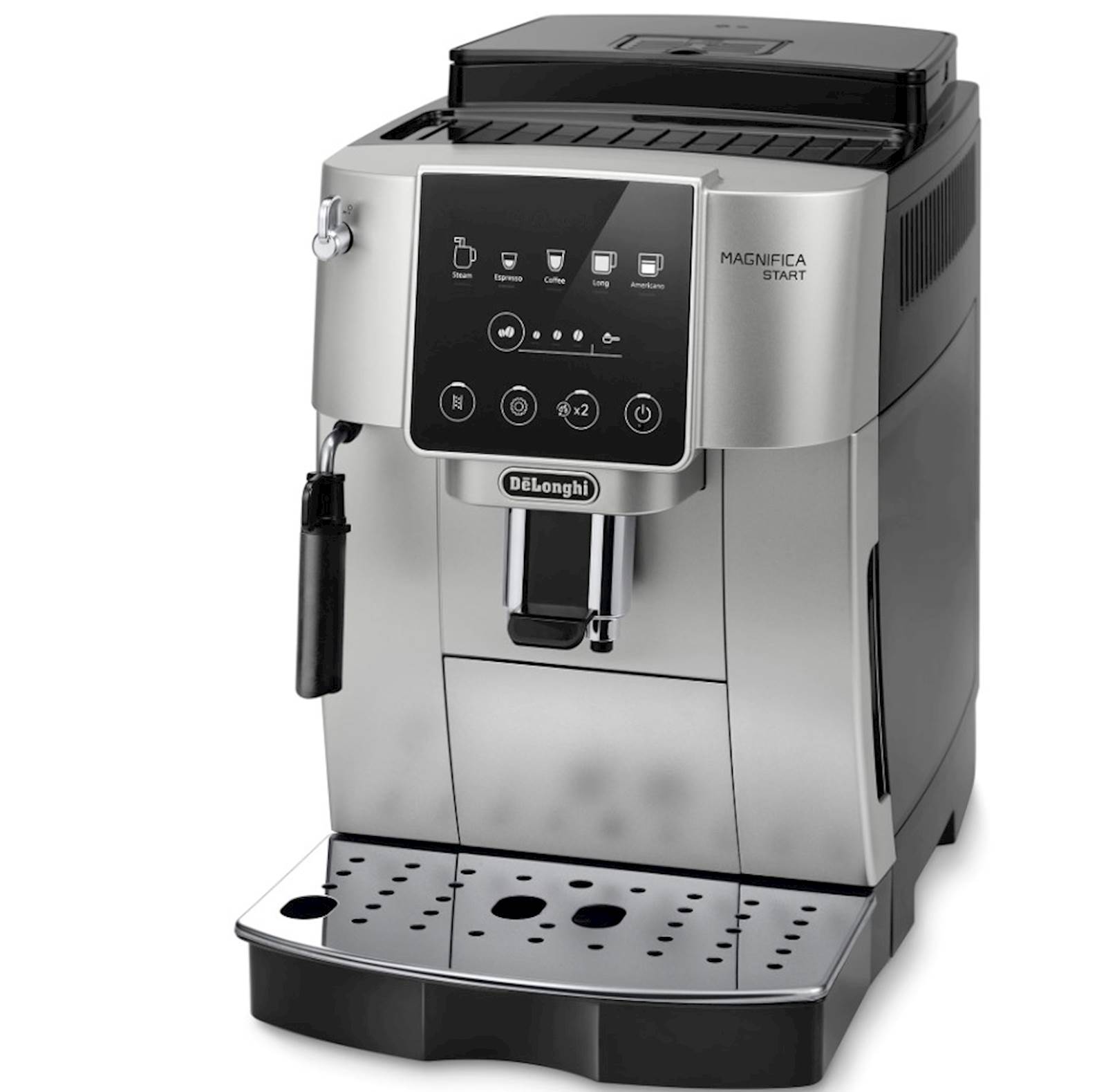 Uronite u svijet kafe – od zrna do šoljice. Magnifica Start od De’Longhi vam nudi sve što vam je potrebno za pripremu vašeg omiljenog napitka od kafe na bazi espressa kod kuce. Ima korisnicko sucelje i crno-sivu završnu obradu. Koristeci individualni izbor pica, možete pripremiti svoje pice samo pritiskom na dugme.