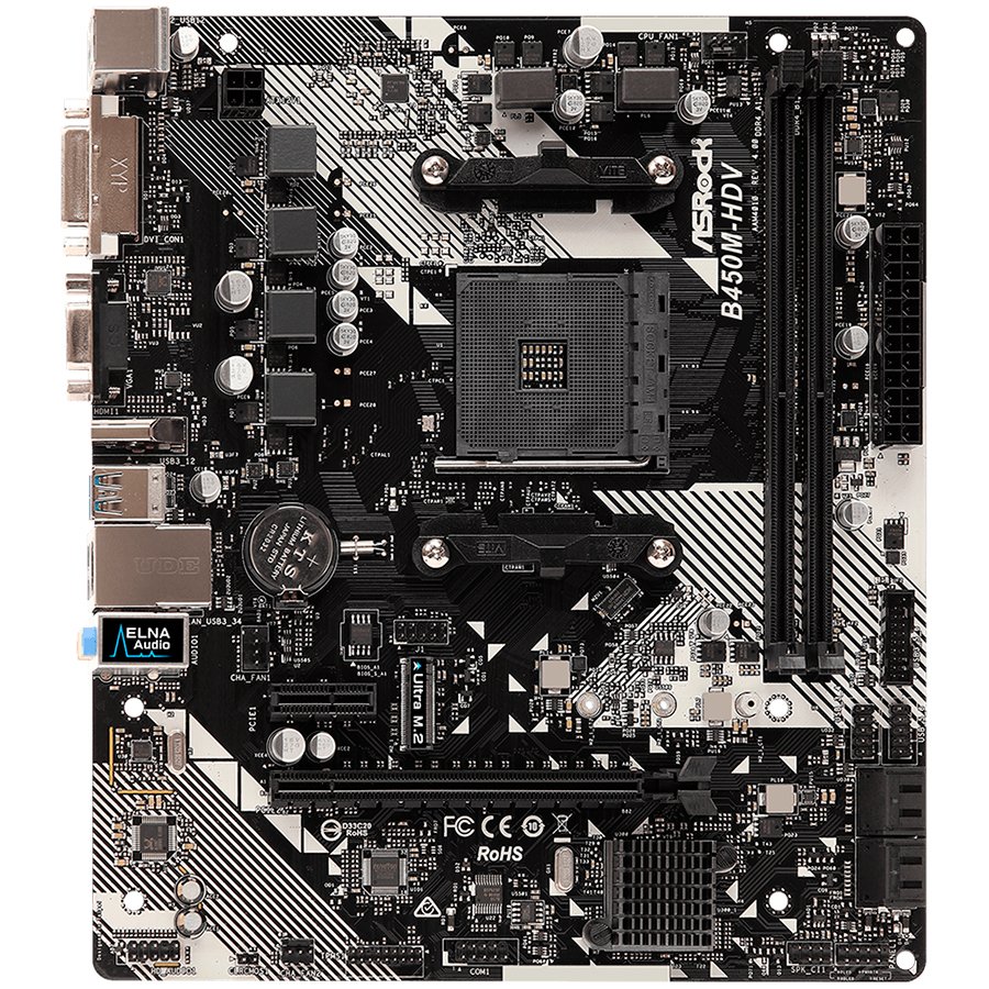 ASROCK Main Board Desktop B450M-HDV R4.0 (SAM4,2xDDR4,1xPCI 3.0×16,1xPCI Ex1,SATA III,1xM.2,1xUlraM.2,USB3.0,GLAN, VGA,DVI,HDMI,) mATX Retail