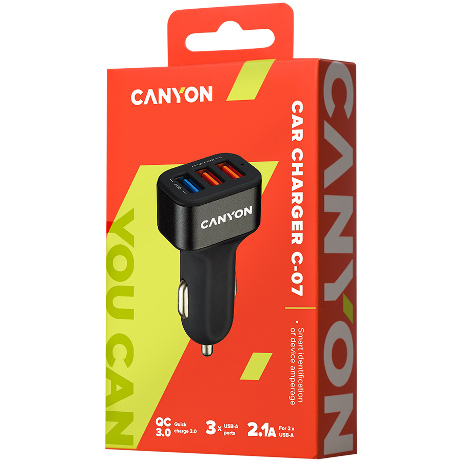 Commercial Name CANYON car charger C-07 QC 3.0 2.4A/3USB-A Black