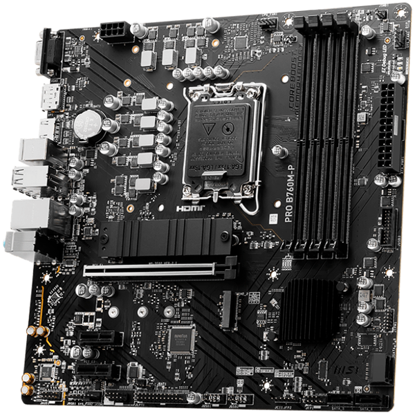 MSI PRO B760M-P Motherboard, Micro-ATX – Supports 14th/13th/12th Gen Intel Core Processors, LGA 1700 – DDR5 Memory Boost 6800+MHz/OC, PCIe 4.0 x16 Slot, M.2 Gen4 Slots