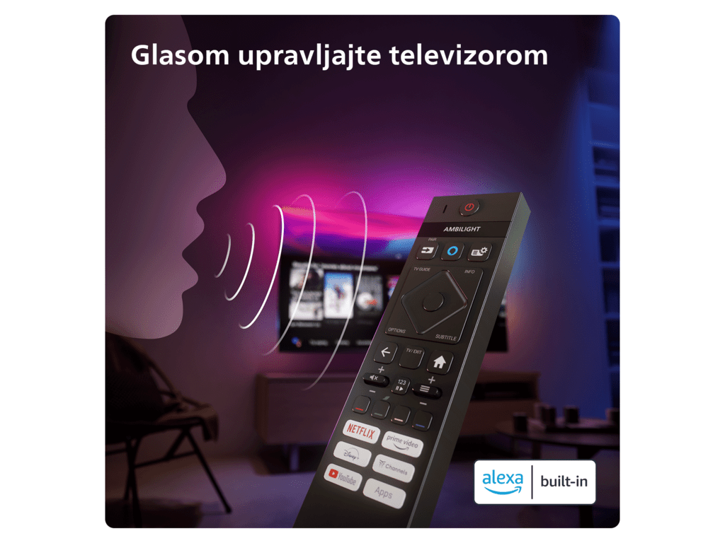 Philips 85″PUS9019 4K Mini LED; TITAN OS; Ambilight s 3 strane; panel 120HZ; P5 procesor; Dolby Vision; HDR10+; Micro Dimming Pro; Natural Motion; procesor cetverojezgreni; zvuk RMS 40W; 2.1 HDMI; memorija 16GB; Antracit sivi okvir;