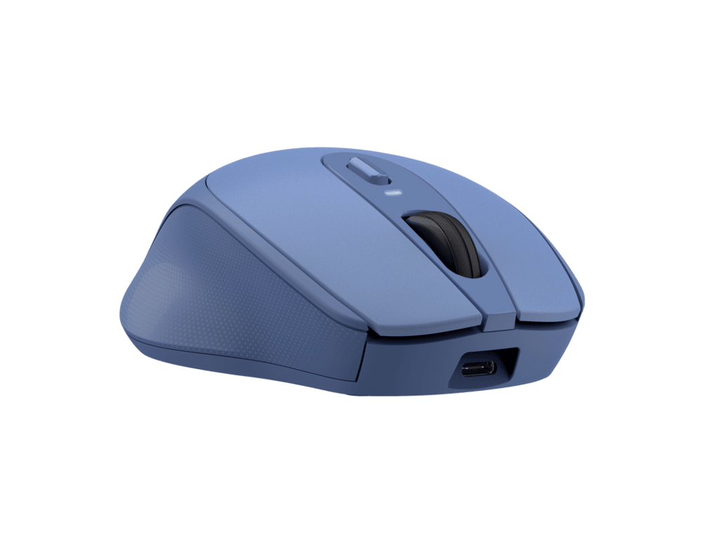 Trust Zaya wireless plavi miš, integrisana punjiva baterija, punjač type-C. Podesivi DPI od 800-1600. Prilagođen za lijevu i desnu ruku, USB konektor, wireless domet 10 m, 4 tipke.
